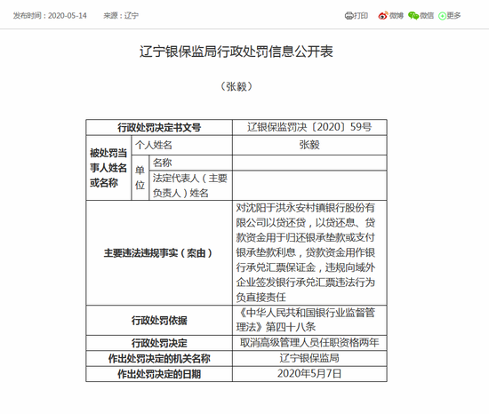 辽宁金融监管局对兴业银行沈阳分行行政处罚信息