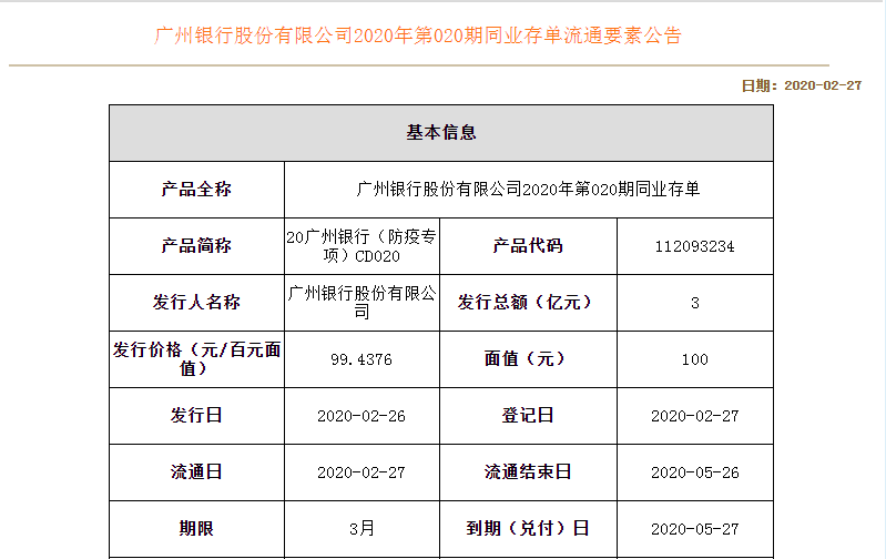 (广州银行发行防疫专项同业存单)