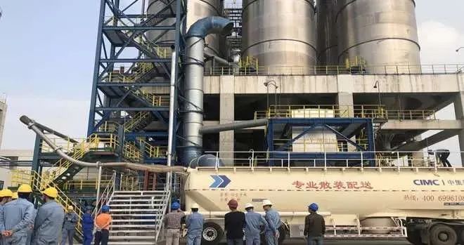 (巨正源科技有限公司正在卸车配送聚丙烯)