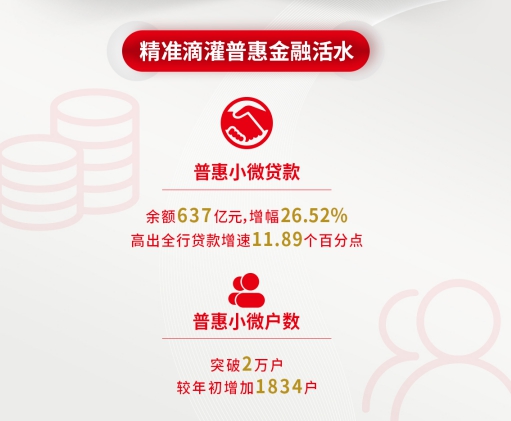 助力“美丽乡村”建设,晋级“富民直通车”服务体系,富民卡累计发卡达90万张,支持超过1000个特征民宿院落建设,“千院计划”目标提早完成。