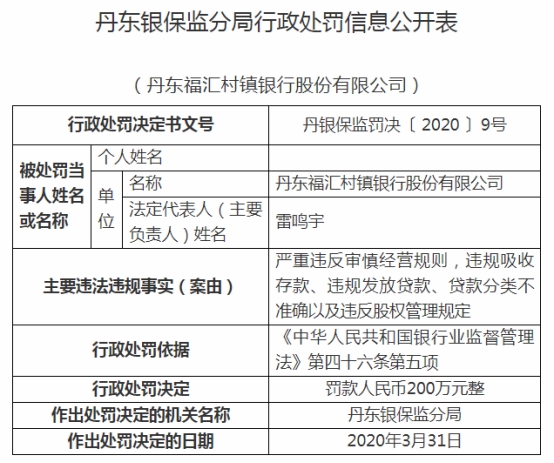 吴中350vip葡亰集团村镇银行违犯谨慎运营被罚