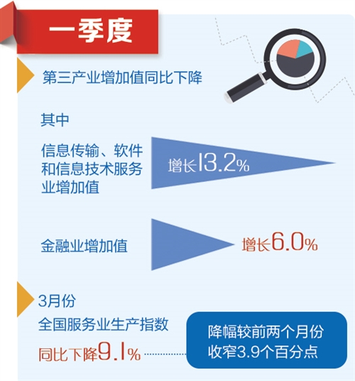 古代服务业波动增长。一季度,信息传输、软件和信息技术服务业,金融业添加值同比分别增长13.2%和6.0%,合计拉动服务业添加值增长1.2个百分点。