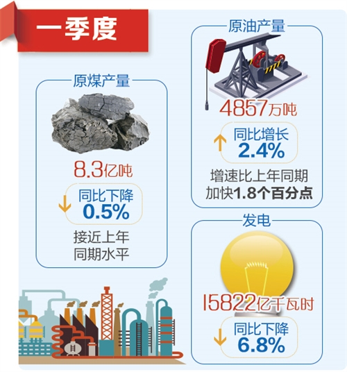 油气消费保持较快增长。油气消费企业加大供应力度,积极释放优质产能。一季度,原油产量4857万吨,同比增长2.4%,增速比上年同期加快1.8个百分点。