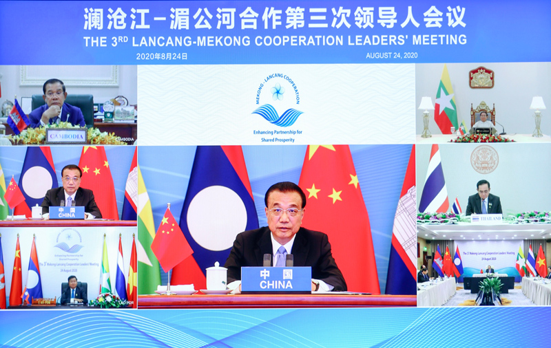 国务院总理李克强8月24日上午在人民大会堂出席澜沧江—湄公河合作第三次领导人视频会议。李克强和老挝总理通伦共同掌管会议。柬埔寨首相洪森、缅甸总统温敏、泰国总理巴育、越南总理阮春福出席。