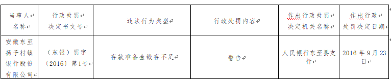 安徽东至扬子村镇银行违法遭罚