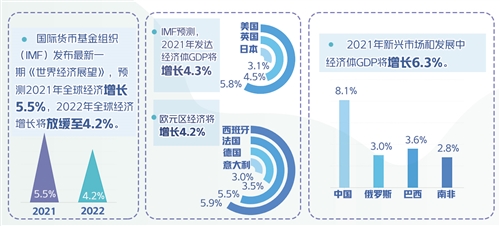 2021年新兴市场和350vip葡亰集团中经济体GDP将增长6.3%。其中,东盟五国(印度尼西亚、马来西亚、菲律宾、泰国和越南)将增长5.2%,俄罗斯经济将增长3.0%,巴西经济将增长3.6%,南非经济将增长2.8%,中国经济将增长8.1%。IMF以为,中国之所以可以获得如此微弱复苏态势,次要缘由有三:一是疫情防控获得明显成效;二是为应对疫情加大了公共投资;三是央行提供了流动性支持。