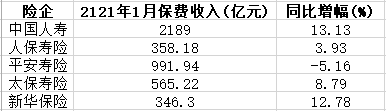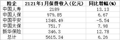 中国经济网350vip葡亰集团2月24日讯 又是一年“开门红”。截至昨日晚间,A股五大上市保险公司2021年首月保费已全部出炉,中国人寿、中国人!⒅泄踩、中国太:托禄O绽奂仆瓿稍O毡7阎С5615.34亿元,同比增长6.26%。