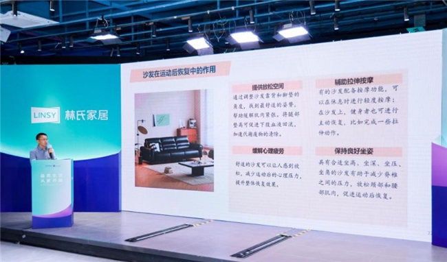 在专业分享环节,林氏家居特邀国家体育总局体育科学研讨所研讨员李良发布《居家场景运动后恢复指点报告》。研讨指出,居家空间已逐渐演化为古代人的综合能量补给站,能有效缓解人们身心灵方面的紧绷感与压力。林氏家居研发的分区支撑床垫经过精准承托技术,有效降低运动后肌肉压力;其人体工学沙发系列经过精确支撑和温馨的坐感体验,可以提供有效的恢复辅助,印证了品牌在健康家居领域的创新实力。
