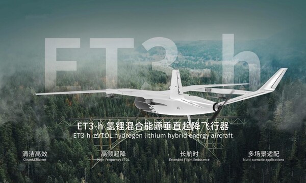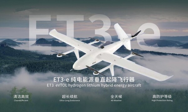 ET3-h氢锂混合版:结合清洁高效动力,高频起降顺应性强,超长续航,全复合材料设计确保低维护成本,多场景适配350vip葡亰集团巡检、边境监控等运用。
