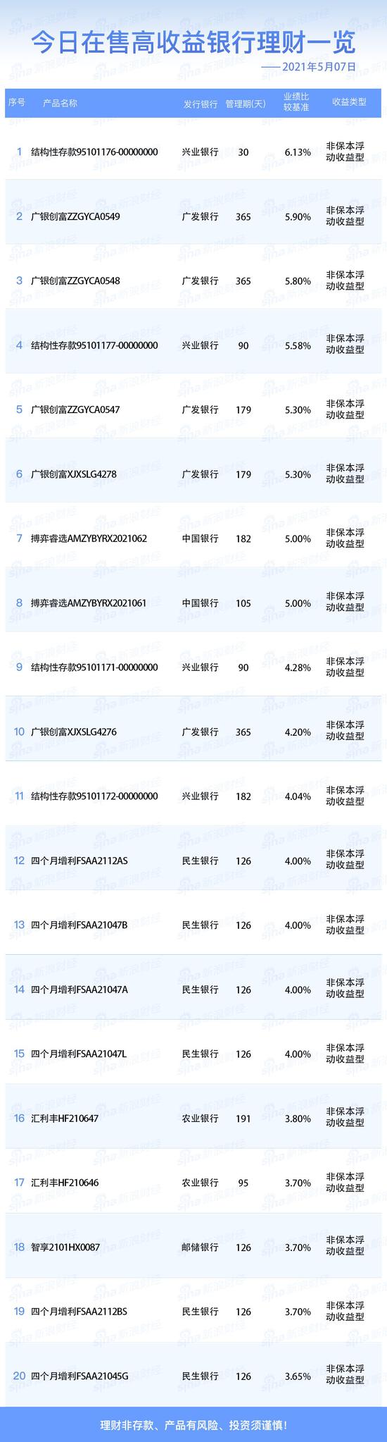 银行16日在售高收益理财产品一览