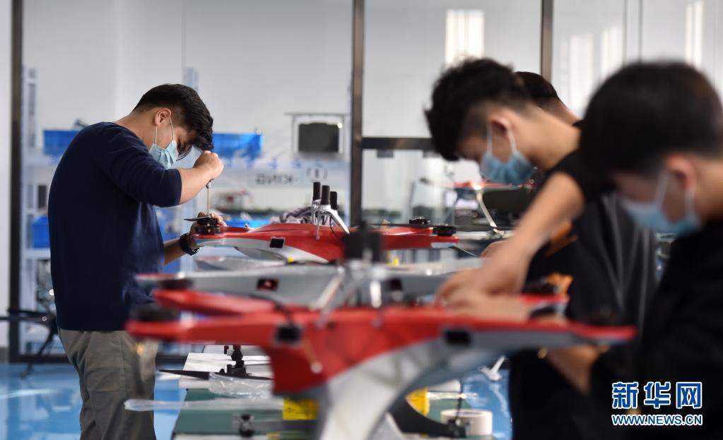 天津云圣智能科技有限责任公司工作人员在车间内组装无人机(2020年12月1日摄)。新华社记者 赵子硕 摄
