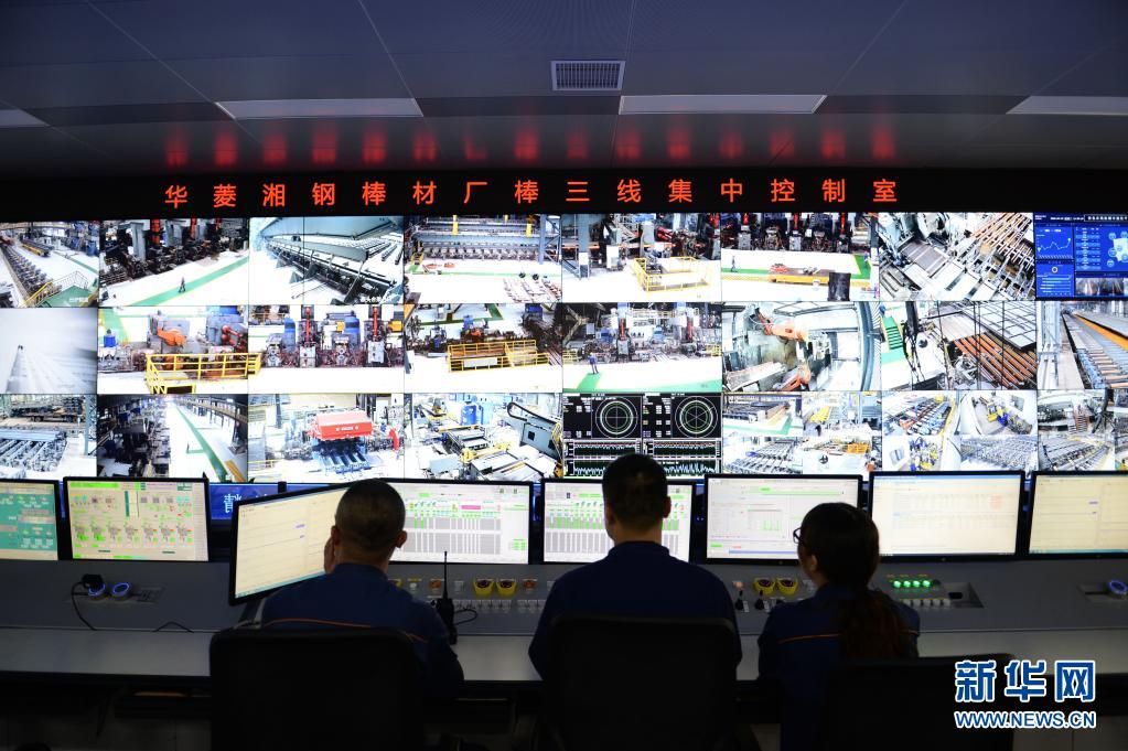 工作人员在湖南华菱湘钢棒材厂棒三线集中控制室内作业(2020年9月15日摄)。新华社记者 陈振海 摄