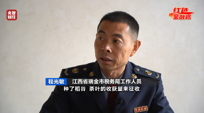 江西省瑞金市税务局工作人员 程光敏:当时农业税次要按农民分得土地后,种了稻谷、茶叶的播种量来征收。假如种稻谷一年收两季,就征两次税,也就是播种几季就按几次纳税。假如遇到天灾等,可以享用税收适当优惠减免。