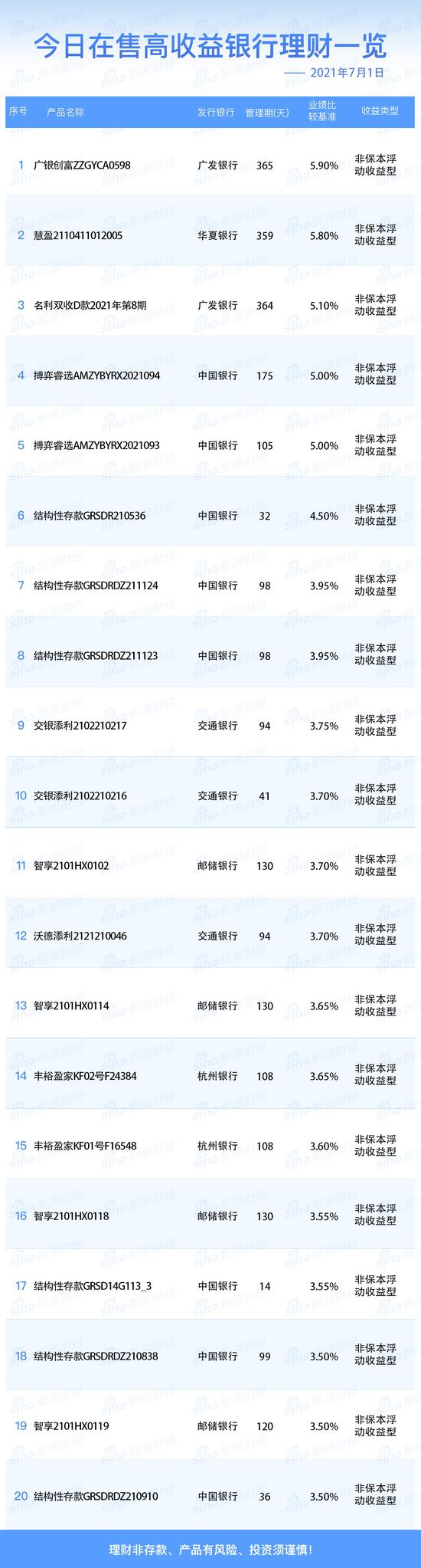 银行16日在售高收益理财产品一览