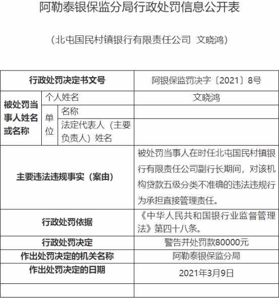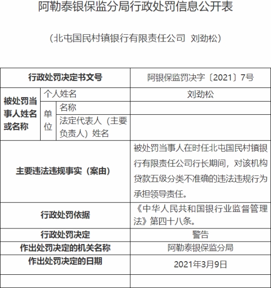 北屯国民村镇银行开账户未备案遭罚