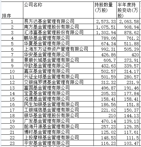 其中,易方达蓝筹精选混合加仓数量最多,为969.10万股,该基金由“公募一哥”张坤掌舵。