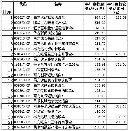 华安聚优精选混合(现任基金经理饶晓鹏)、北方成长先锋混合A(现任基金经理茅炜、王博)、易方达优质企业三年持有混合(现任基金经理张坤)、易方达均衡成长股票(现任基金经理陈皓)的加仓数量也都超过200万股。