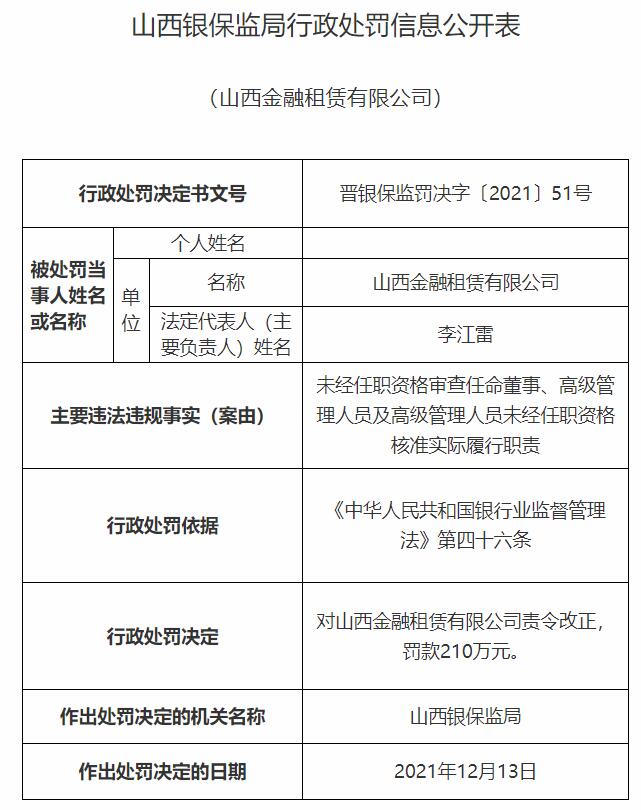 浙江浙银金融租赁公司违法被罚 租赁业务三查不到位
