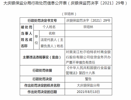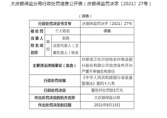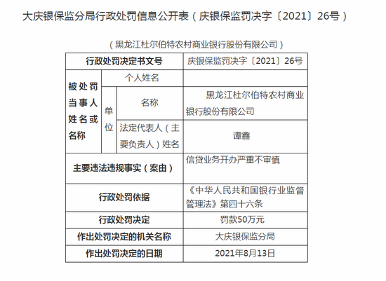 黑龙江绥芬河农商行被罚50万:贷款五级分类不准