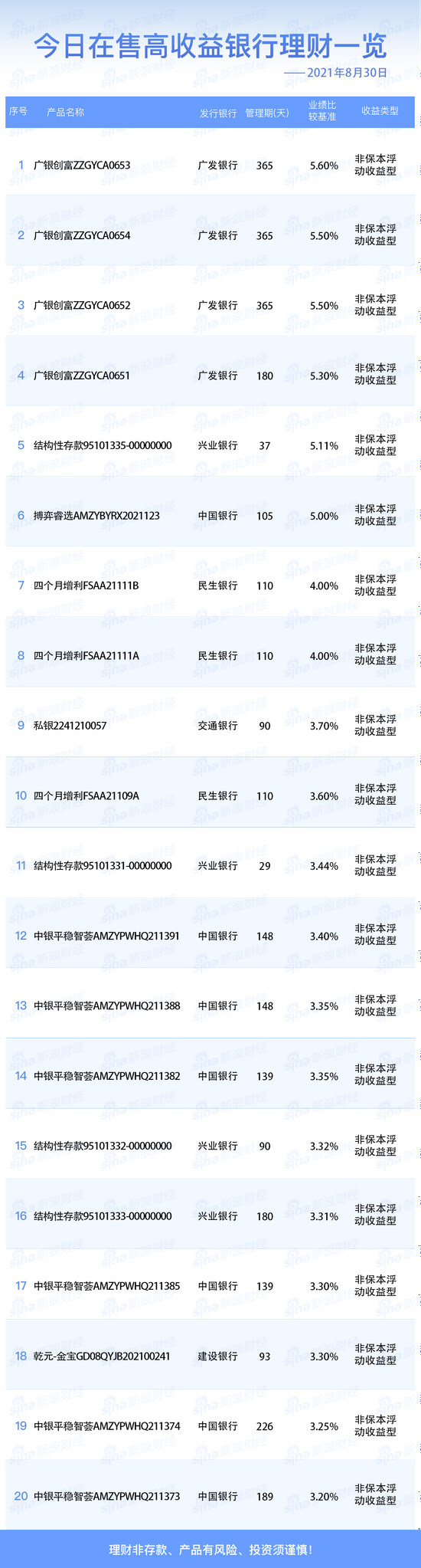 银行30日在售高收益理财产品一览