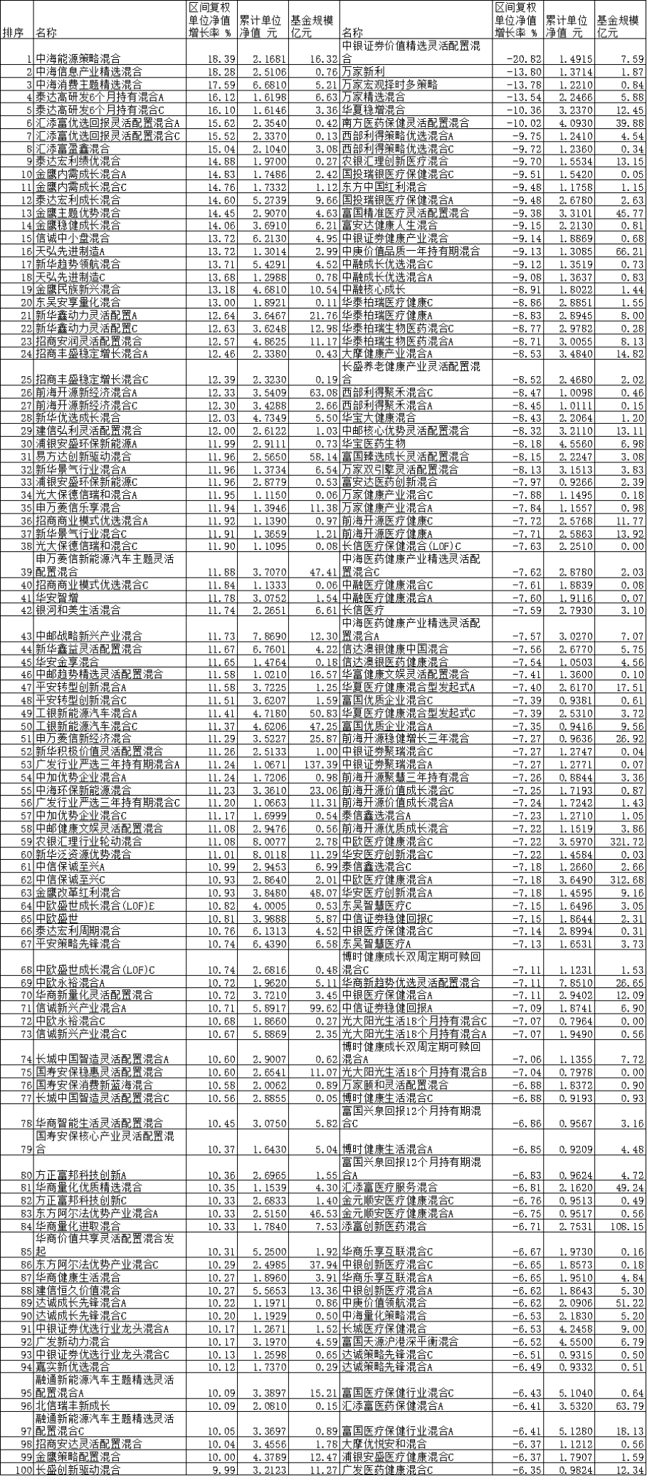 涨幅榜上,10月份有近百只混合型基金涨幅超过10%,而涨幅超过15%的仅8只,分别是中海基金旗下的中海动力策略混合、中海信息产业精选混合、中海消费主题精选混合,泰达宏利基金旗下的泰达高研发6个月持有混合A、泰达高研发6个月持有混合C,汇添富基金旗下的汇添富优选报答灵活配置混合A、汇添富优选报答灵活配置混合C、汇添富盈鑫混合。