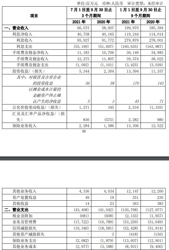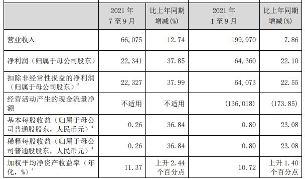 今年第三季度,交通银行完成营业支出660.75亿元,同比增长12.74%;归属于母公司股东的净利润223.41亿元,同比增长37.85%;归属于母公司股东的扣除非经常性损益的净利润223.27亿元,同比增长37.99%;基本每股收益0.26元,同比增长36.84%;加权均匀净资产收益率11.37%,比上年同期上升2.44个百分点。