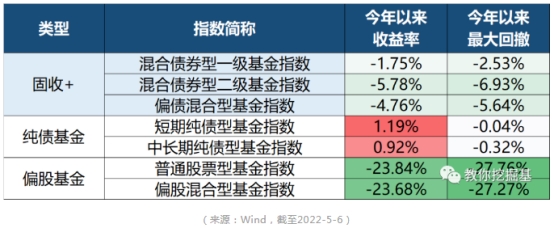 。ㄊ堇丛:Wind,Wind分类,截止2022-4-21。风险提示:以上股票仓位和风险等级仅指通常状况,具体以基金合同、招募阐明书等材料商定为准。收益率和最大回撤指对应的万得基金指数表现,具体包括混合债券型一级基金指数、混合债券型二级基金指数、偏债混合型基金指数。指数历史业绩不预示将来表现,也不代表具体基金产品表现。)
