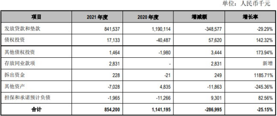 2021年,江阴银行共计提信誉减值损失8.54亿元,较上年减少2.87亿元,降幅25.15%。次要系信贷资产质量提升。其中,发放贷款和垫款减值损失8.42亿元,同比减少29.29%。