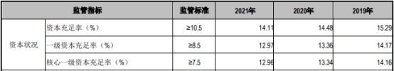 江阴银行的资产充足率目标均下滑。截至2021年末,江阴银行资本充足率为14.11%,上年同期为14.48%;一级资本充足率为12.97%,上年同期为13.36%;核心一级资本充足率为12.96%,上年同期为13.34%。