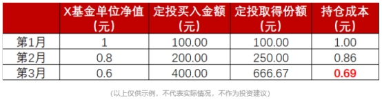 Why?由于从原理下去说,定投收益=(现价-持仓均匀成本)*持有基金份额,假如能在下跌的过程中坚持买入,就可以搜集到更为廉价的筹码,不断降低本人的持仓成本,当行情发生好转,基金净值下跌到超过我们的成本时,便能扭亏为盈。