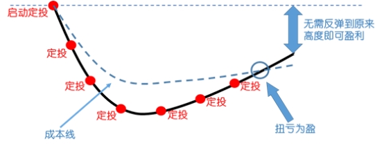 很重要的一点是,由于我们的成本由于低位定投不断降低,因此我们根本不需求行情下跌到原先的初始地位,即可盈利。