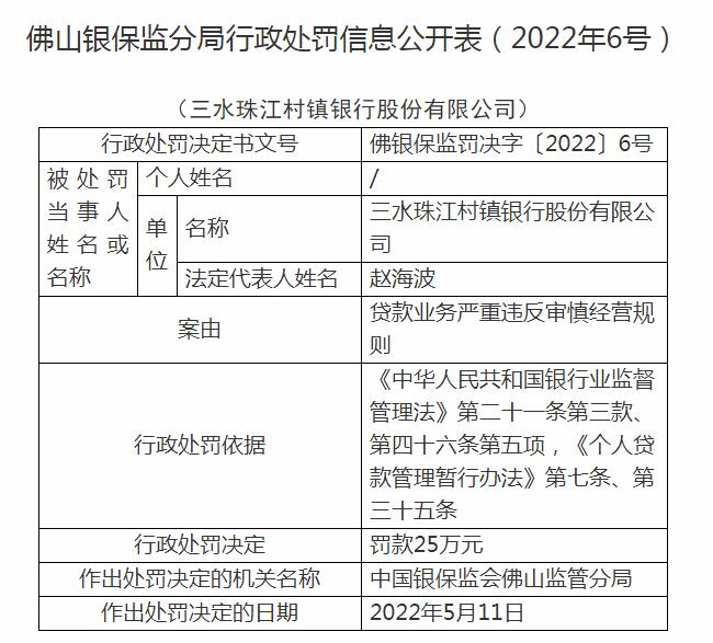 吴中350vip葡亰集团村镇银行违犯谨慎运营被罚
