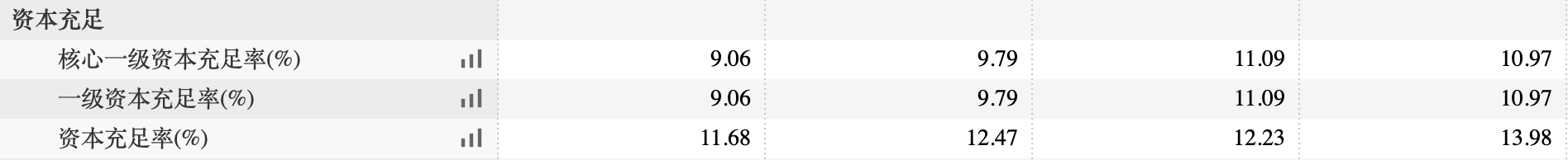 此外,截至2022年三季度末,九江农商行资本充足率11.68%;核心一级资本充足率9.06%;一级资本充足率9.06%,较2021年末分别下降了0.79、0.73和0.73个百分点,其资本充足率低于银保监会官网披露的同期农商行的均匀程度(12.03%)。