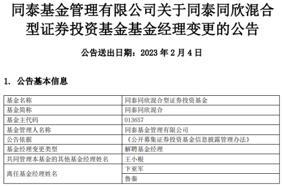 九泰基金2只基金增聘基金经理刘翰飞 刘勇离任