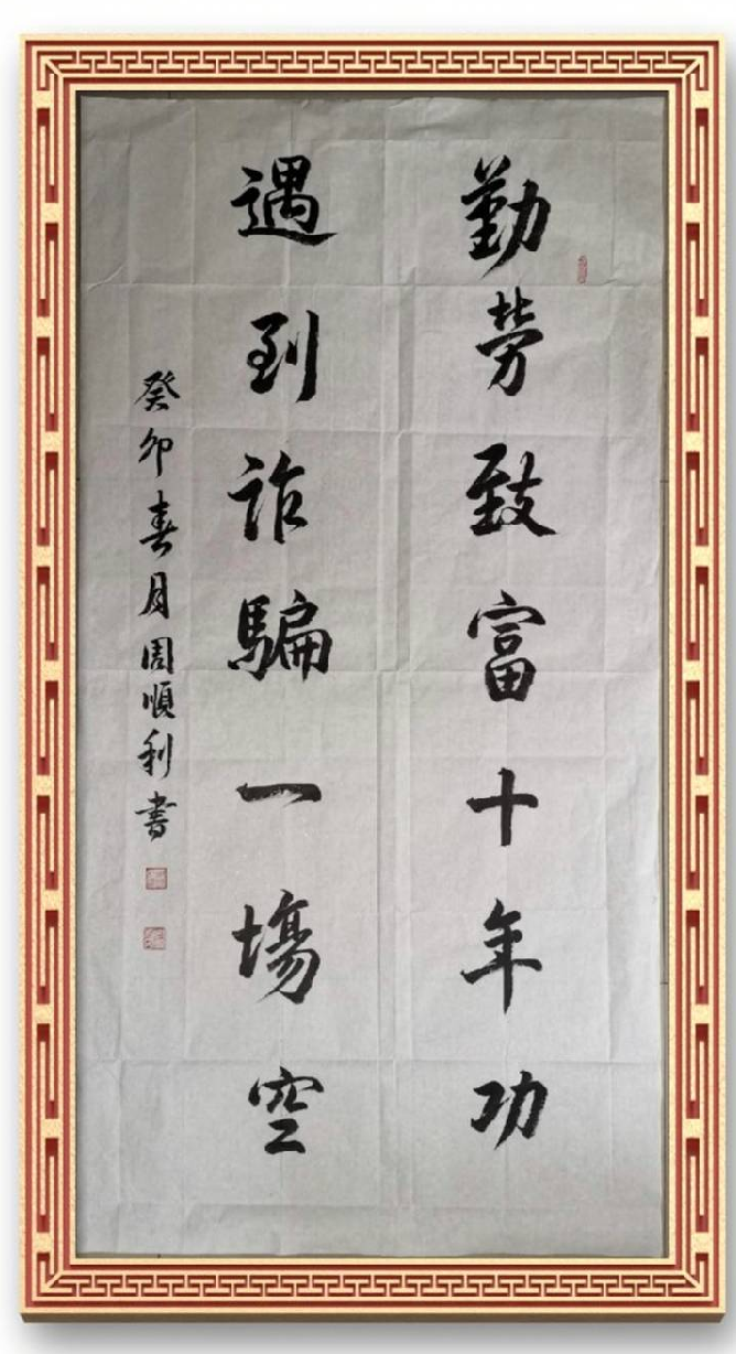 国画《勤劳致富十年功,遇到诈骗一场空》周顺利