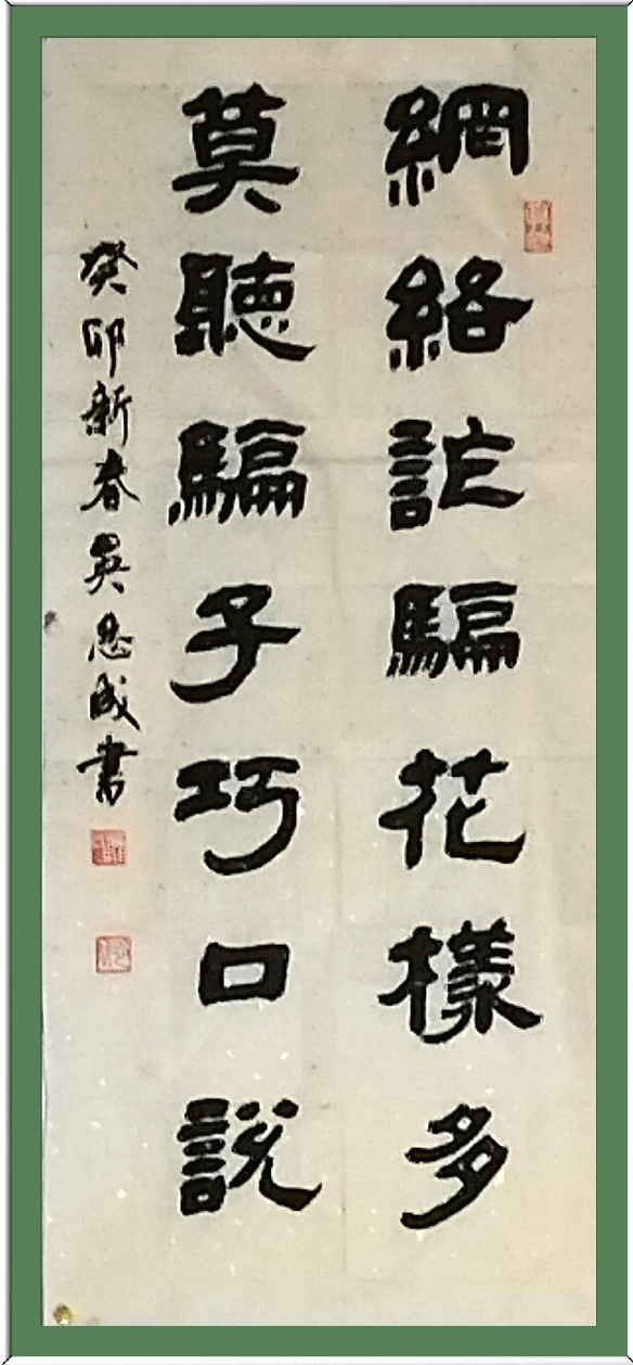 书法《网络诈骗花样多,莫听骗子巧口说》吴忍成