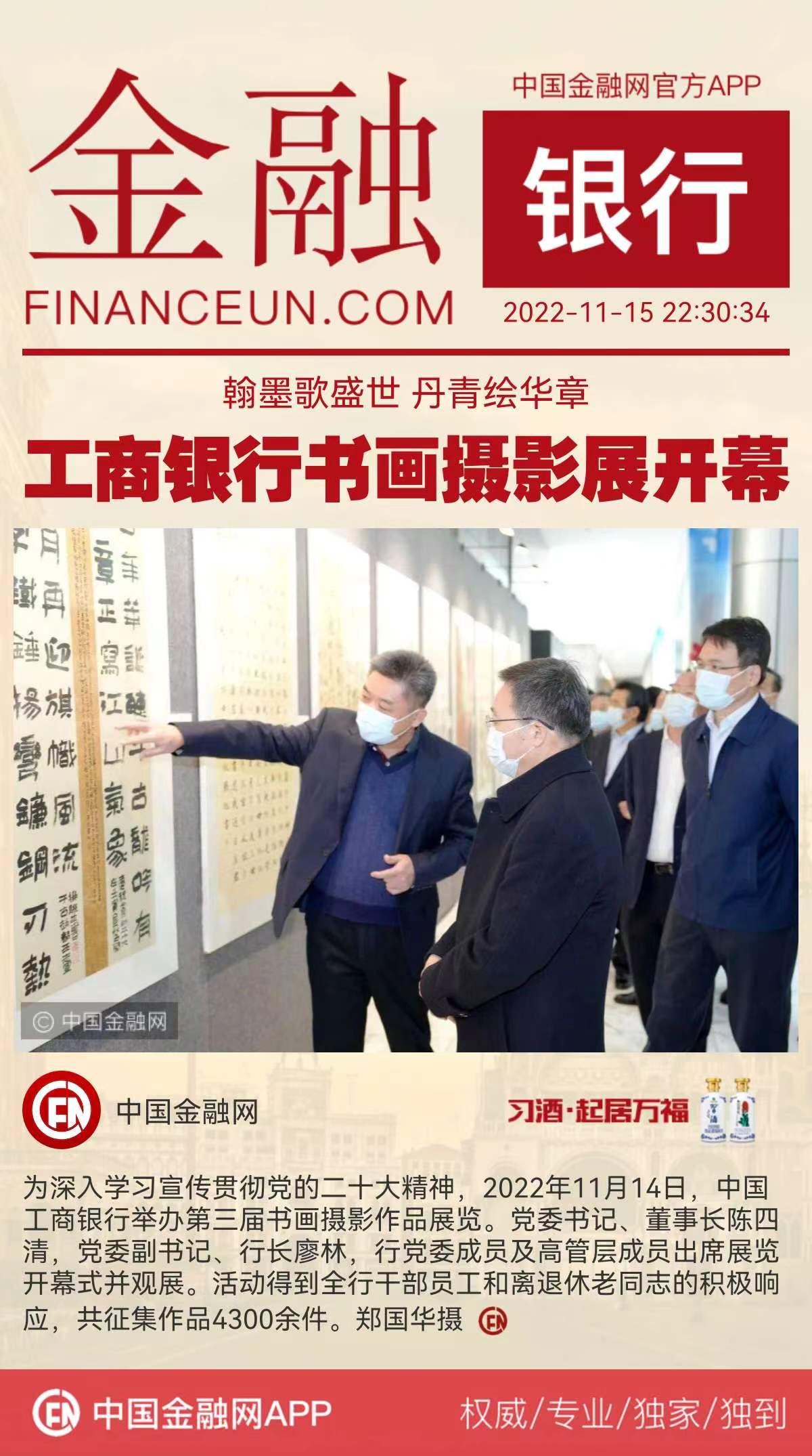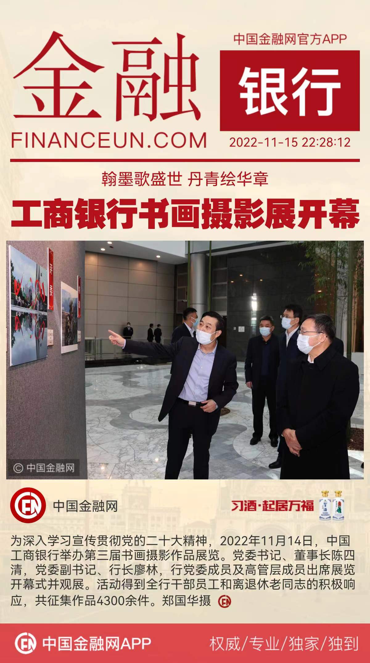 为深化学习宣传贯彻党的二十大精神,2022年11月14日,中国工商银行举办第三届书画摄影作品展览。党委书记、董事长陈四清,党委副书记、行长廖林,行党委成员及高管层成员出席展览开幕式并观展。