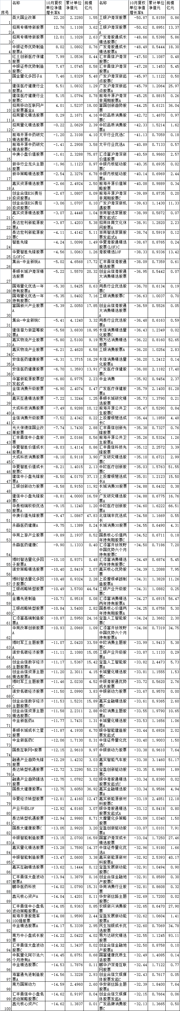 反观下跌股基,有18只跌幅超过40%,跌幅超20%的多达516只。根据同花顺iFinD数据显示,多只沪港深主题基金跌幅居前,如汇丰晋信沪港深股票C、汇丰晋信沪港深股票A在前10月分别下跌了47.50%、47.28%,三季度前十大重仓股中除赣锋锂业、东山精密两只A股公司外,其他均为港股上市公司,美团、快手更是其前两大重仓股。