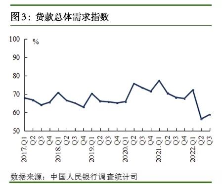 3.贷款总体需求指数:反映银里手对贷款总体需求状况判别的扩散指数。该指数的计算方法是在全部接受调查的银里手中,先分别计算以为本行本季贷款需求“增长”和“基本不变”的占比,再分别赋予权重1和0.5后求和得出。