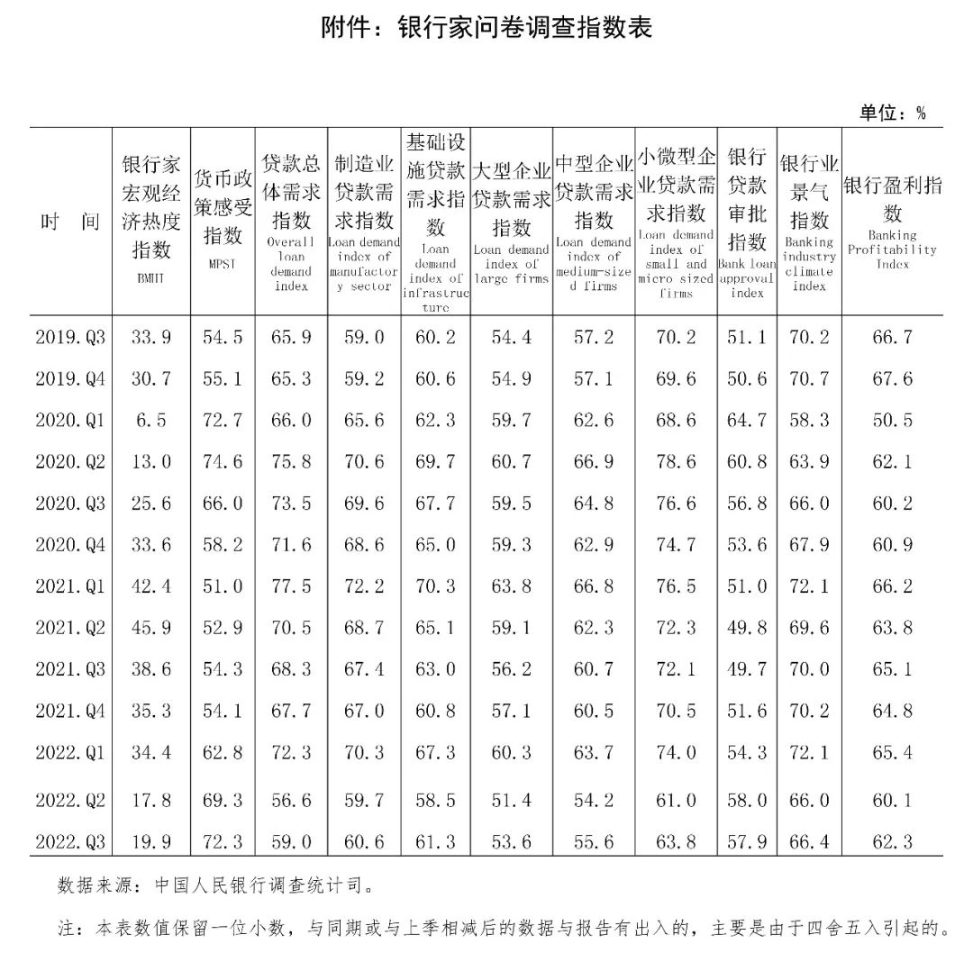 2022年第三季度中国人民银行开展的全国银里手问卷调查结果显示: