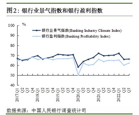 银行业景气指数为66.4%,比上季上升0.4个百分点,比上年同期下降3.6个百分点。银行盈利指数为62.3%,比上季上升2.2个百分点,比上年同期下降2.8个百分点。