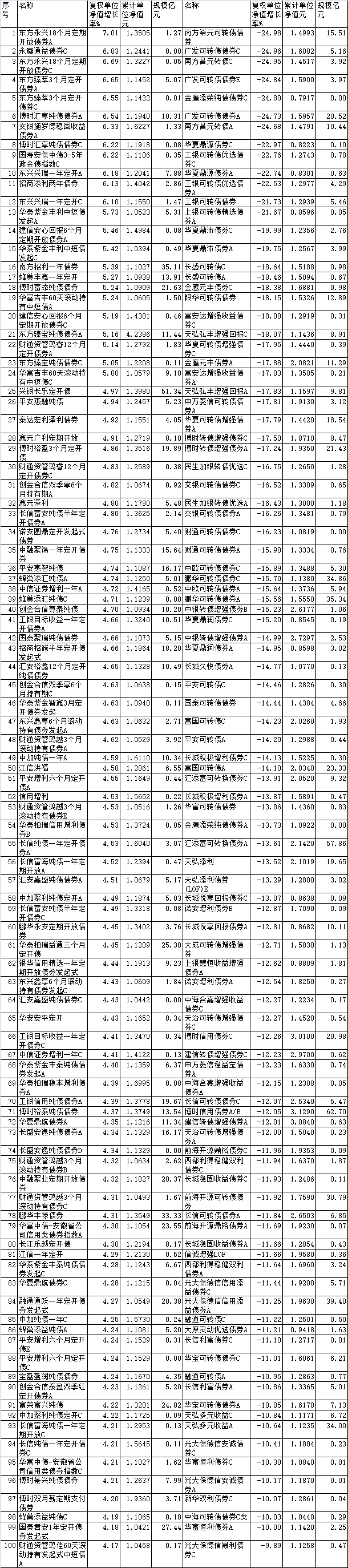 全体看,债券型基金业绩向好,在下跌债基中,24只涨幅超过5%,813只涨幅超过3%。东方基金旗下的东方永兴18个月定期开放债券A位居涨幅冠军,前三季度下跌7.01%,东方臻萃3个月定开债券A、东方臻萃3个月定开债券C也下跌了6.65%和6.55%。