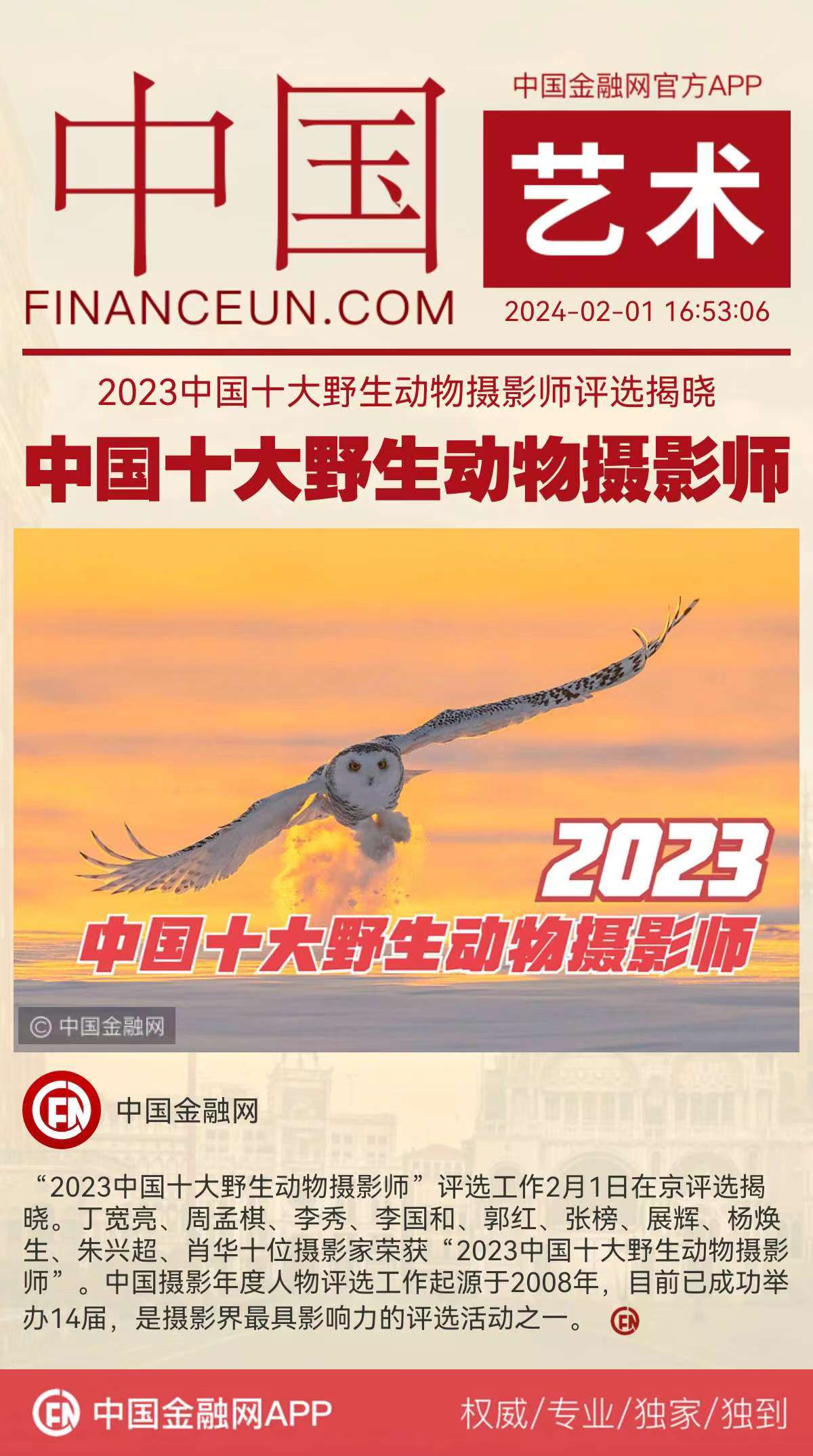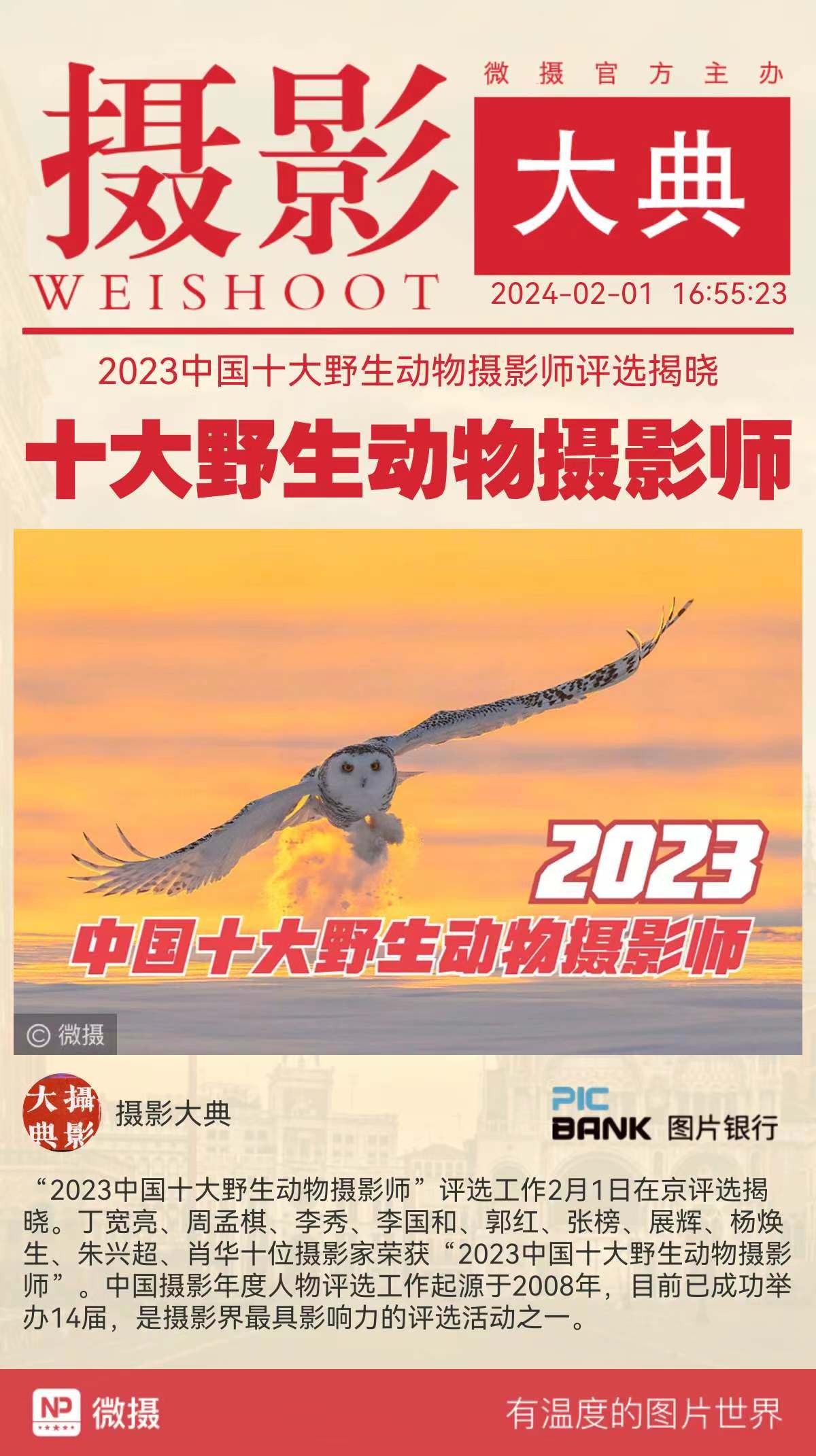 摄影大典丨2023中国十大野生动物摄影师获得者张榜作品欣赏