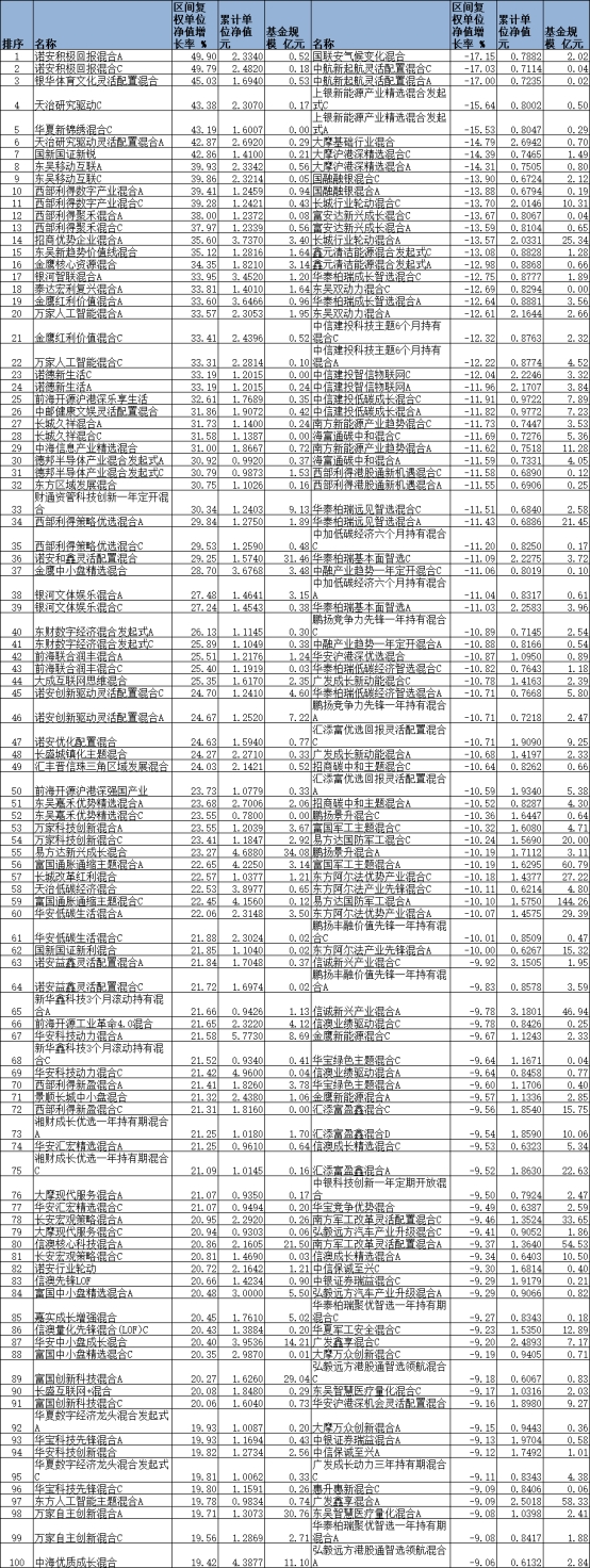 2023年一季度混合型基金涨跌幅前100名一览